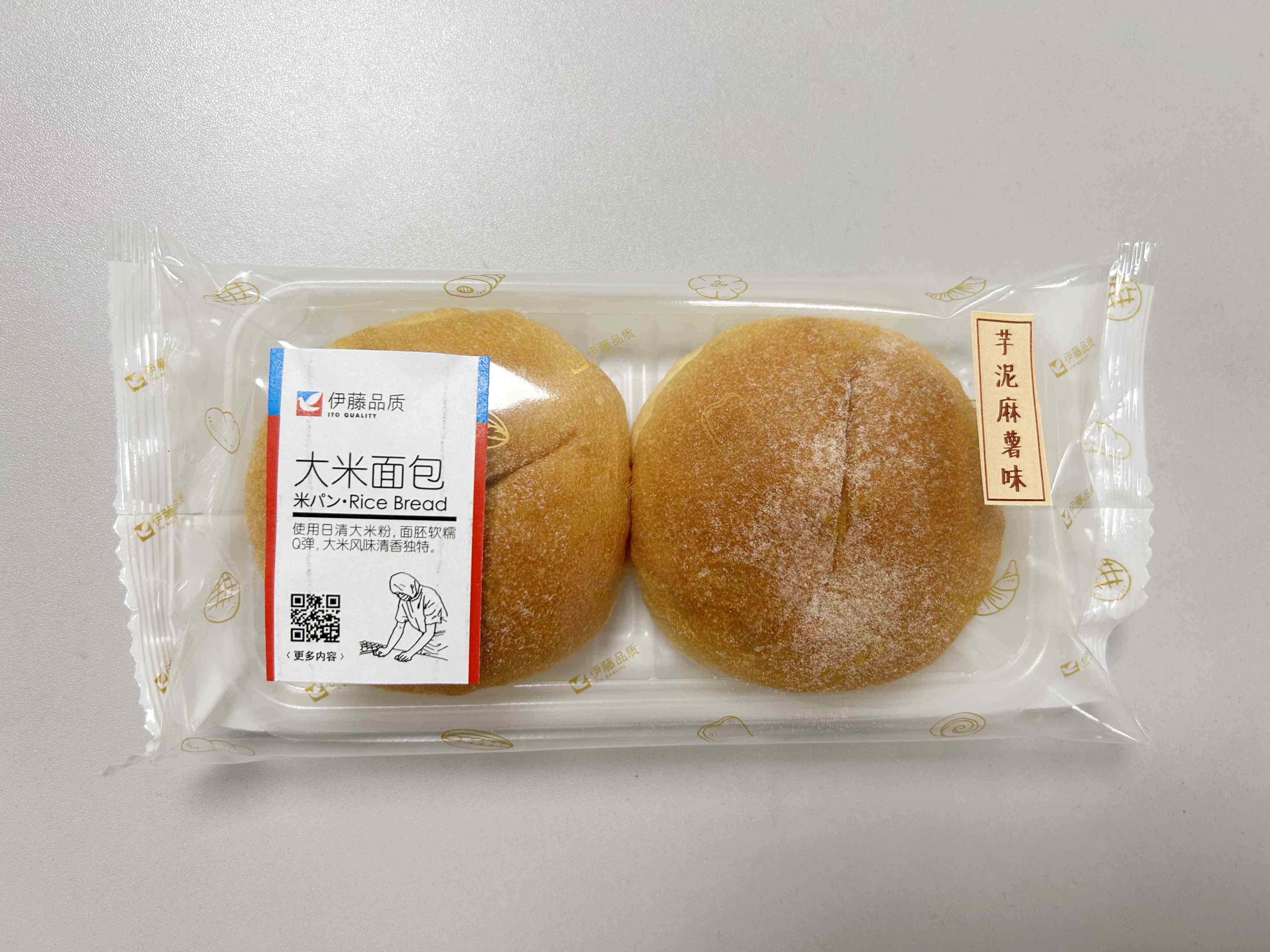 在此基础上,我们还开发了芋泥麻薯米面包。内里加入精选芋泥麻薯馅,甜而不腻,麻薯Q弹可口。