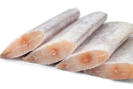 ●原料:选用中国舟山海域自然生长的野生带鱼。船冻锁鲜。