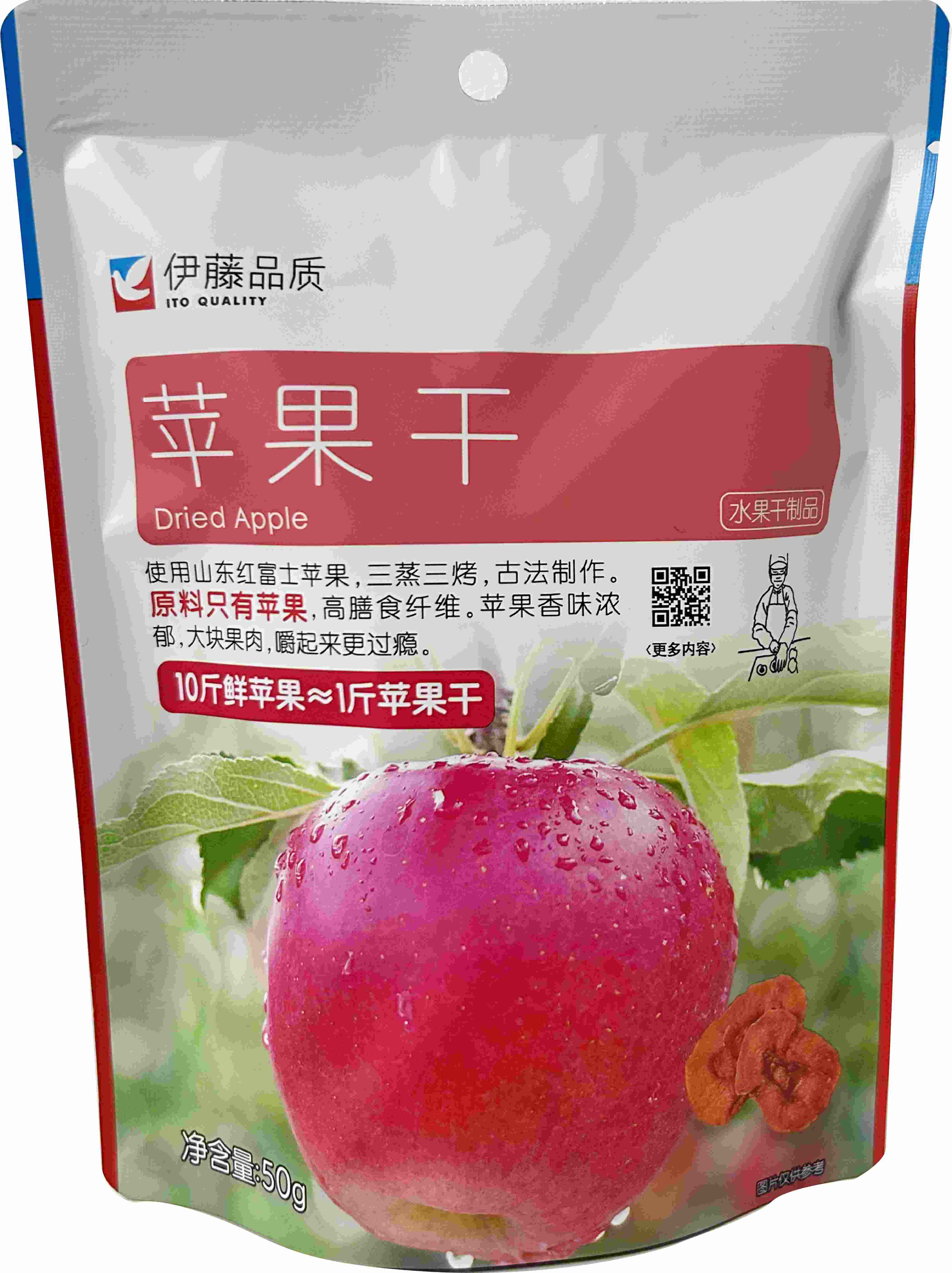 伊藤品质苹果干,只选用脆甜多汁的山东红富士,遵循“三蒸三烤”古法工艺匠心制作。10斤鲜苹果才出约1斤果干,每一块都大块厚实,嚼起来异常扎实满足。它不仅苹果香味浓郁,更富含高膳食纤维。无添加,纯粹苹果香,给您带来既解馋又无负担的实在口感。