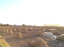水稻收获后需要把稻谷晾干。根据五常的气候,工厂选择在田间以自然晾干的方式进行,能将大米最原始、最自然的味道体现出来。