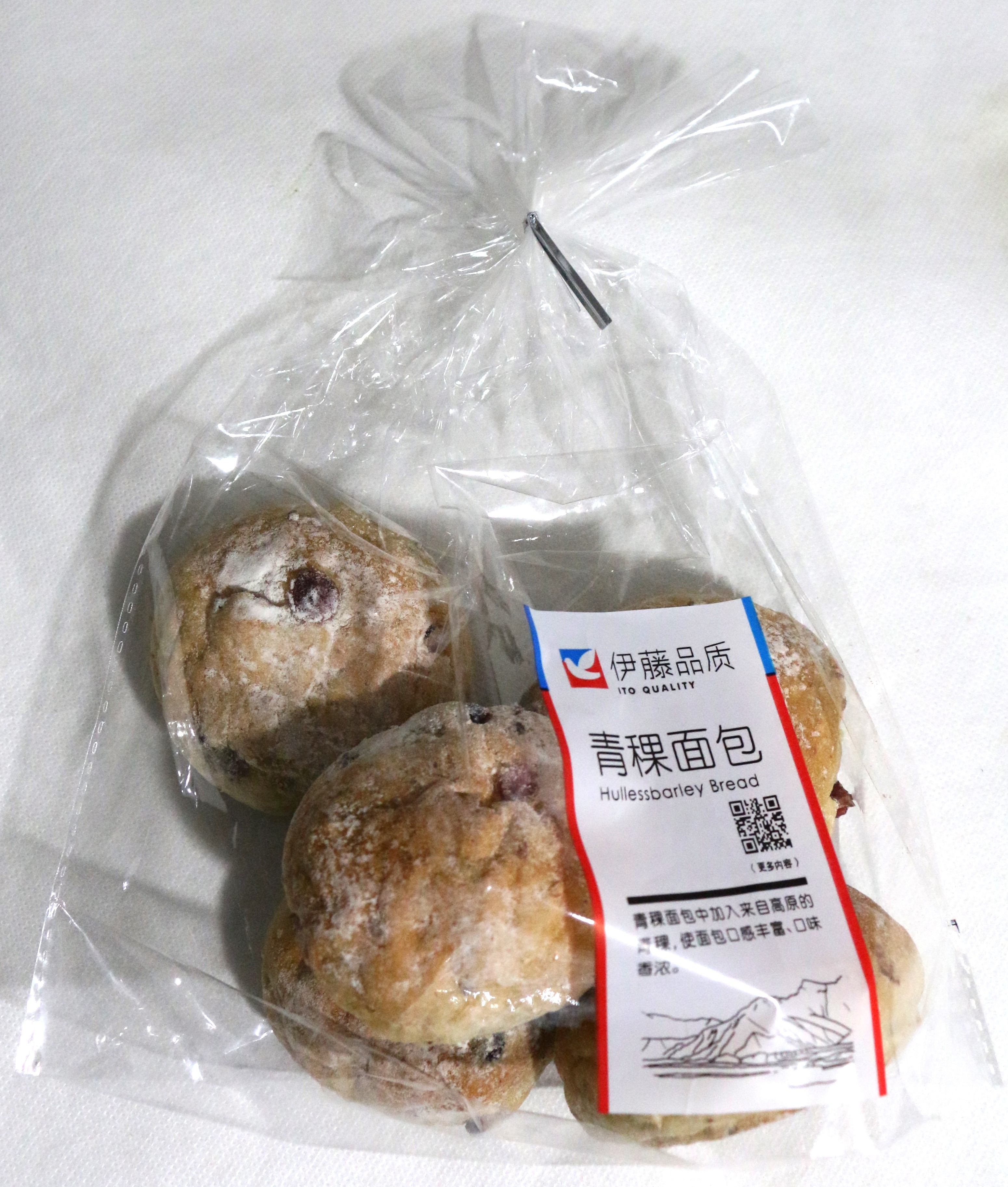 青稞是禾谷类作物,主要产自中国西藏、青海、四川、云南等地,是藏族人民的主要粮食。研究发现,青稞是世界上麦类作物中β一葡聚糖含量较高的作物,是普通小麦的50倍。β一葡聚糖能有效预防结肠癌、心血管疾病及糖尿病的发生。因此,青稞的食用价值得到了全世界的广泛关注。为了保证青稞面包的口感,伊藤洋华堂和生产伊藤品质青稞面包的工厂多次调整配方,希望既能保留青稞颗粒,又能有嚼劲,并且不会太甜。经过多次尝试后才终于决定本次青稞面包的配方。此外,为了向顾客提供安全放心的商品,工厂导入了先进的生产设备,在卫生的生产环境中进行品质稳定的生产。