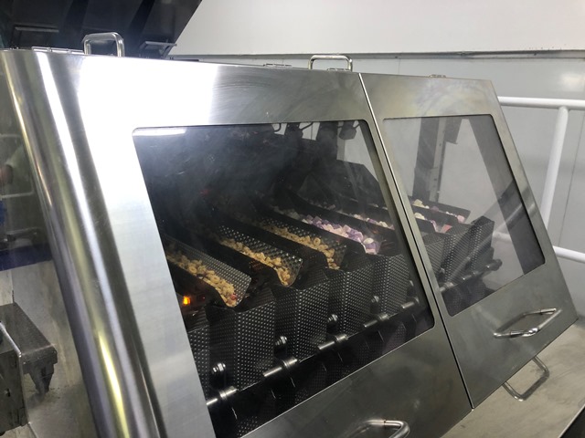 燕麦烘烤后,先与多种水果干、坚果以及谷物圈等充分混合,包装前再按比例加入超丰富多口味的冻干酸奶块,最大程度保证酸奶块的香脆口感。经自动包装机装袋后,称重、装箱。