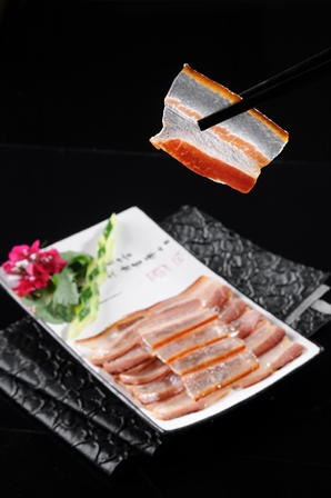 采用洪雅雅河猪精选五花肉,肥瘦间隔,辅青羌传承技艺酱制,自然风干而成。