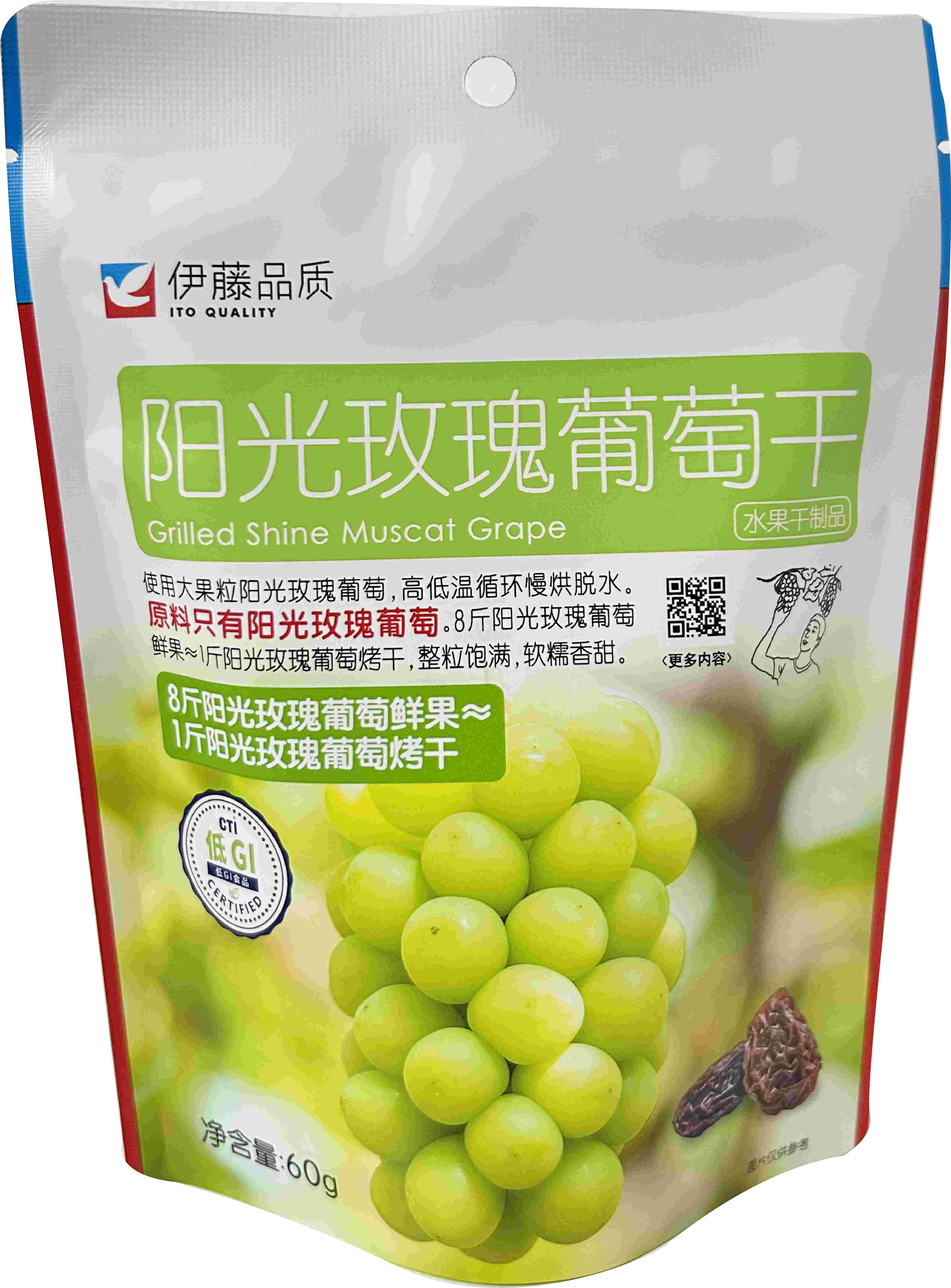 被誉为葡萄中“爱马仕”的阳光玫瑰葡萄,我们取其大果,经高低温循环慢烘,8斤鲜果方得1斤干。颗颗饱满,软糯香甜,并荣获低GI认证,让甜蜜无负担。