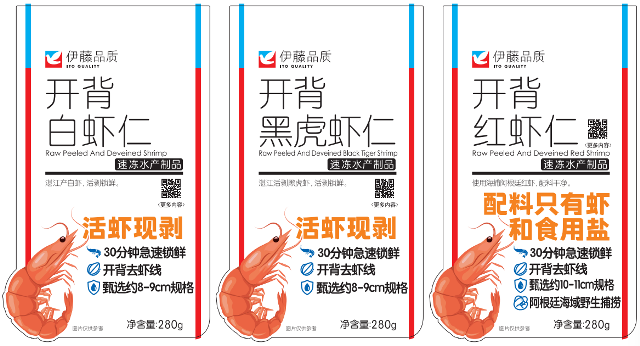 伊藤品质开背红虾仁则精选天然海捕阿根廷红虾为原料,从源头保证食材的纯正与优质。配料只有虾和食用盐,尽可能保留虾仁本身的鲜嫩口感与自然鲜味。原料上严格按尺寸和外观分拣,采用26-30只/磅大尺寸规格,且仅包5-10%的保护性冰衣,分量实在。